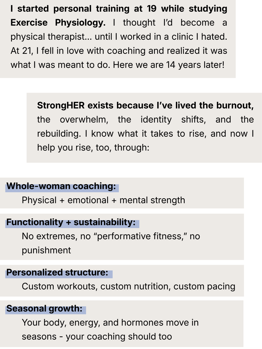 StrongHER was born from lived experience, not theory. I’m in the middle of refining my own comeback, and now I help women start theirs.